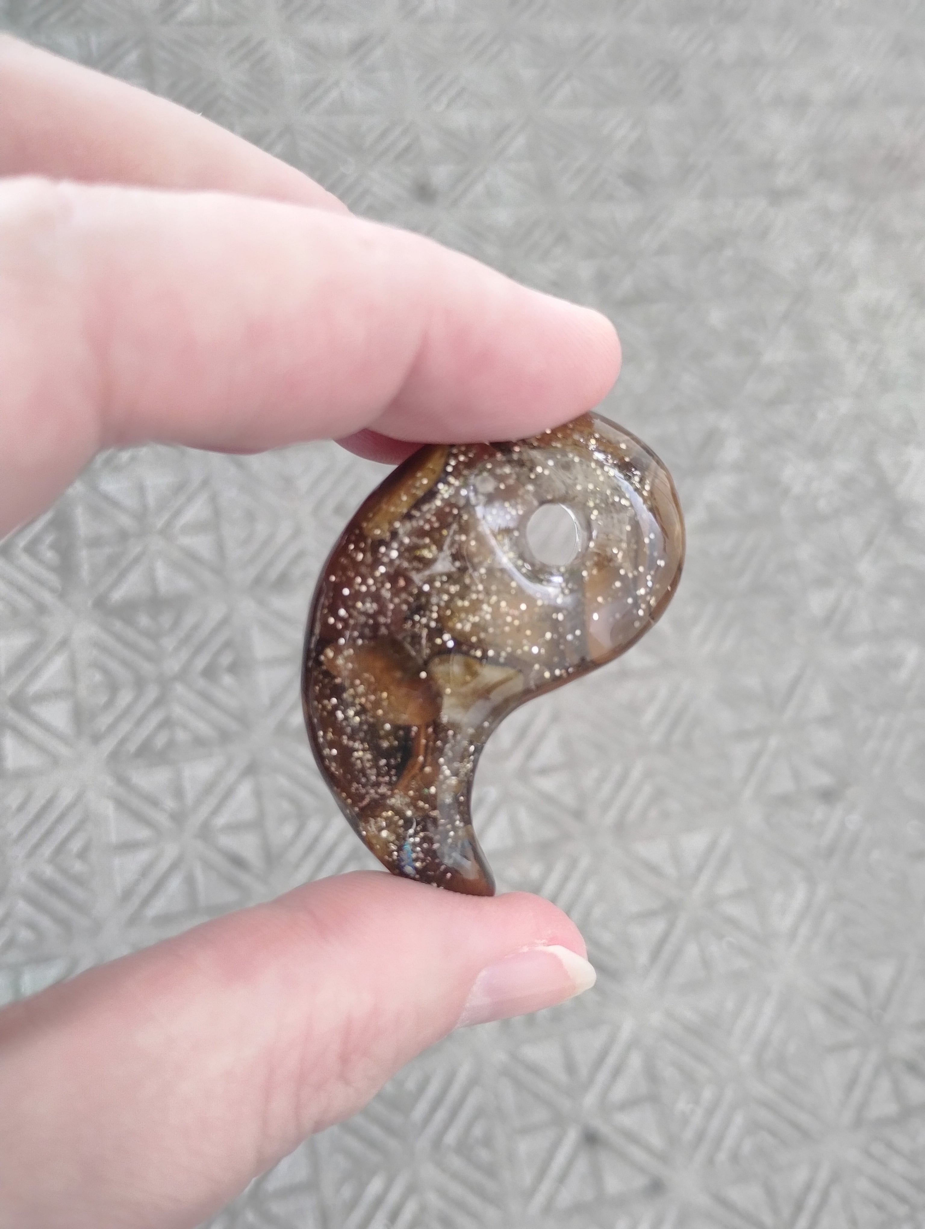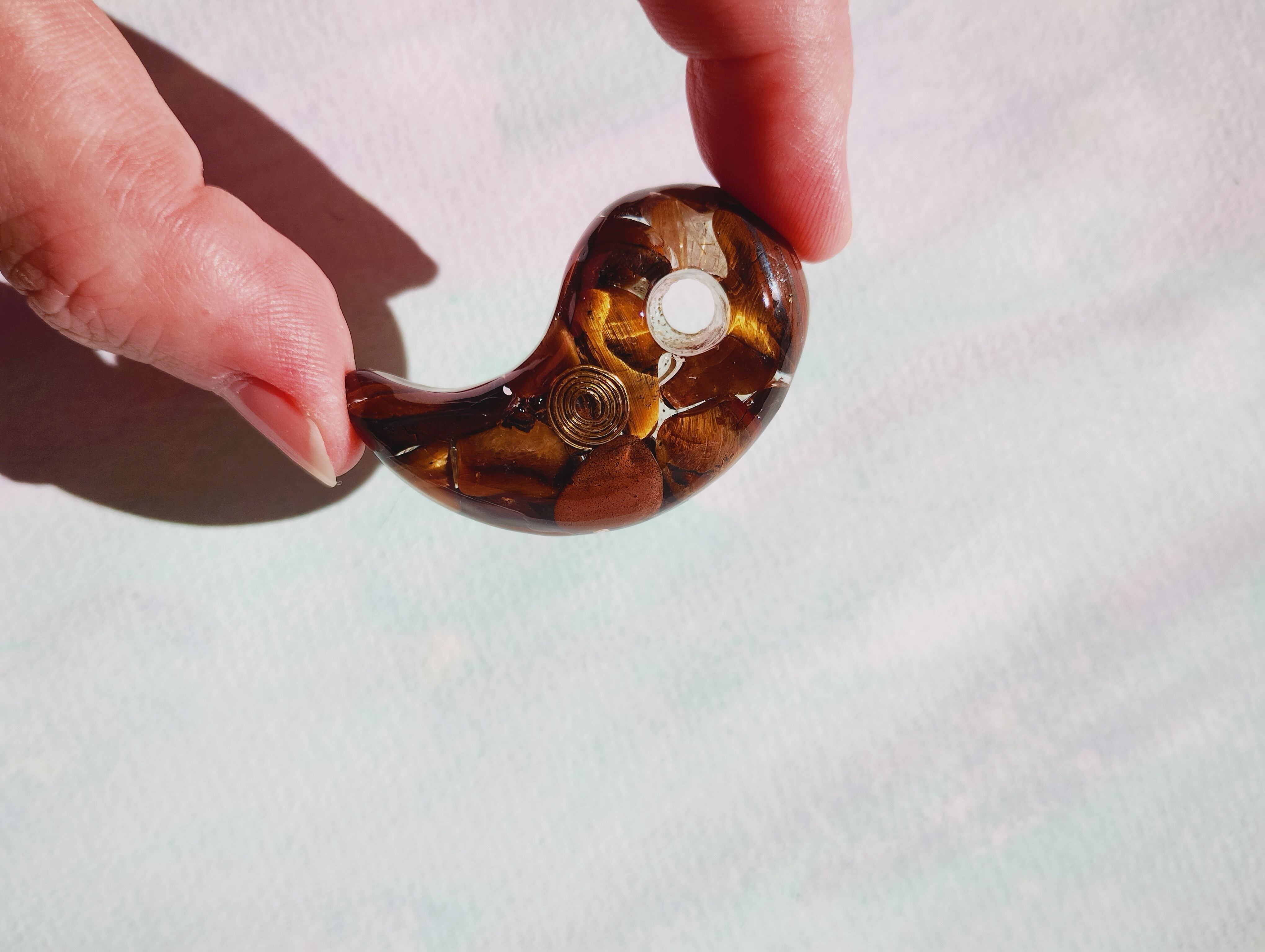 二つの神社の水晶を入れる事で「陰陽統合」のオルゴナイト勾玉になります。