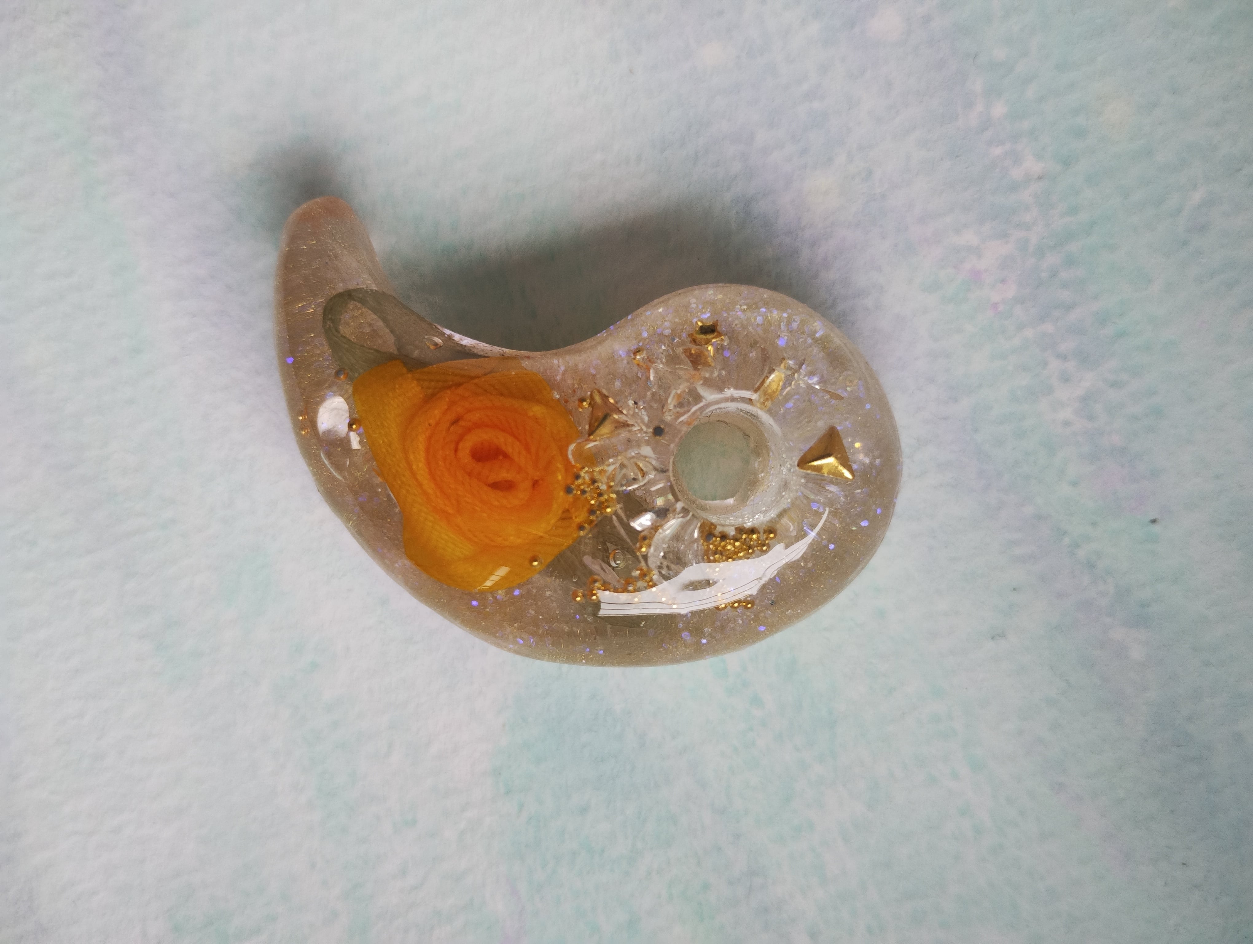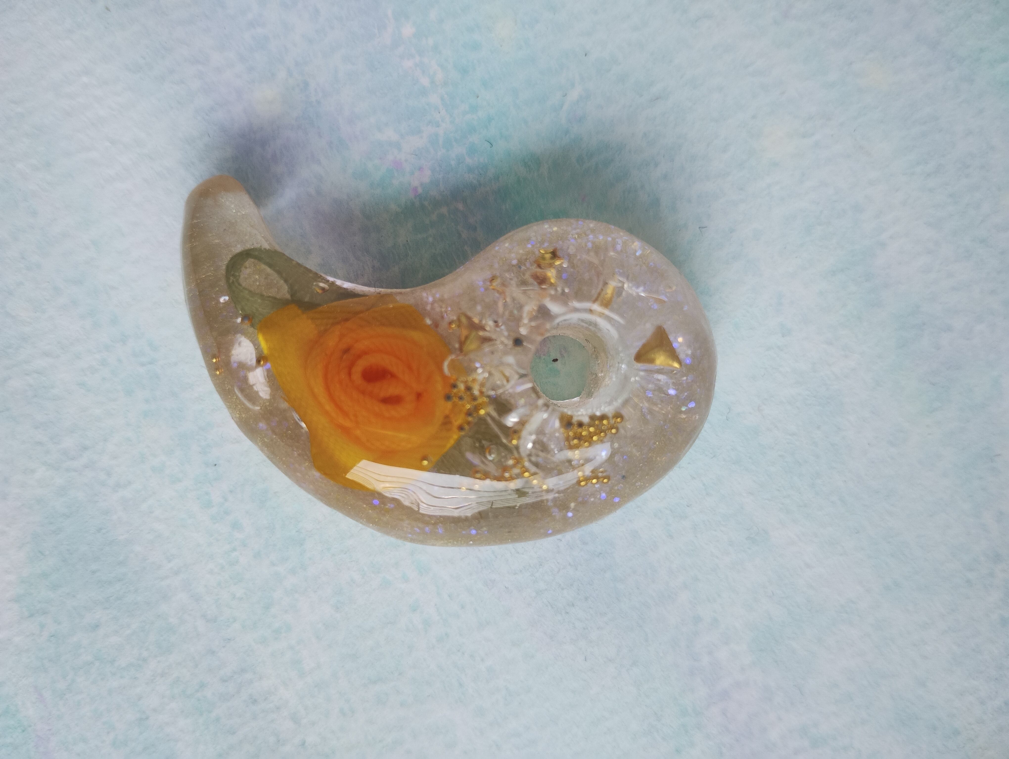 二つの神社の水晶を入れる事で「陰陽統合」のオルゴナイト勾玉になります。